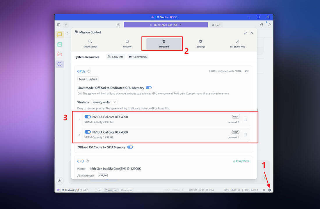 - Running multiple local AI tools (e.g LM Studio + ComfyUI + OpenAI Whisper): Assign one AI app per GPU to maintain stability and avoid VRAM contention.