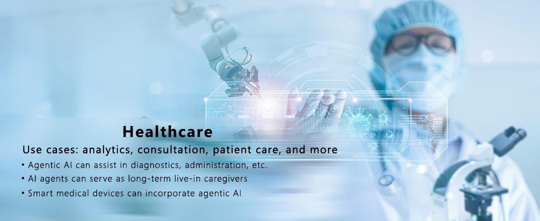 Gen AI applications in healthcare include data analytics, consultation, personalized medicine, drug development, and patient care. Agentic AI goes a step further by distilling critical information from medical big data and proposing helpful solutions, ranging from something as innocuous as a better appointment schedule to life-and-death matters, like catching errors in diagnoses. In long-term care, AI agents can function as a virtual live-in caregiver who monitors patient status, administers treatments, and contacts human doctors in case of an emergency. Some of the ways in which enterprises utilize agentic AI also apply to healthcare, such as workflow coordination and customer service.