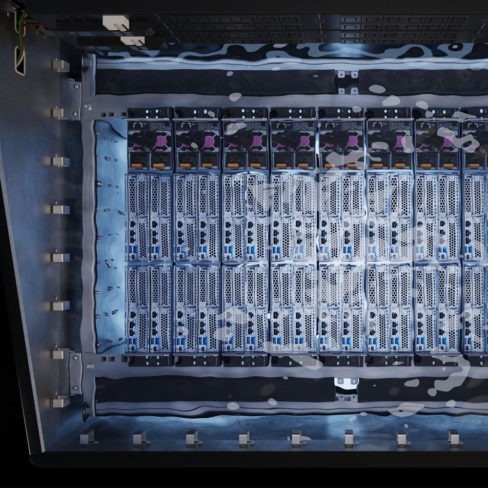 >90% efficiency in the data centers compared to air cooling - including server power consumption and air conditioning costs