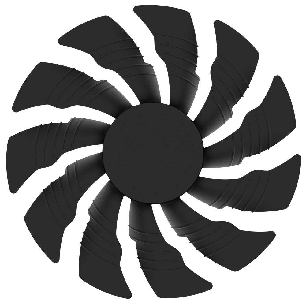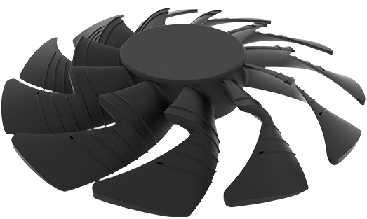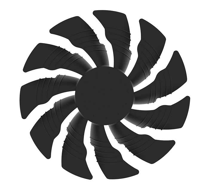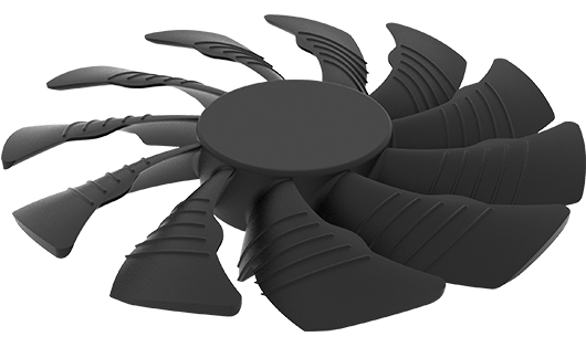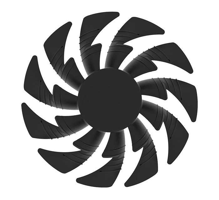 تقوم حواف المروحة ذات الشكل المثلث بشق تيار الهواء و تمريره بسلاسة عبر الممرات ثلاثية الأبعاد المحفورة على سطح المروحة، و هو ما يحسن من دورة تدفق الهواء بشكل كبير.