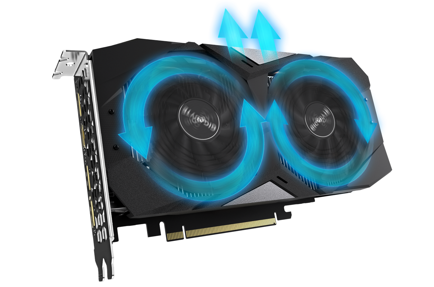 Охладителната система WINDFORCE 2X разполага с два 90-милиметрови уникални блейд вентилатори, алтернативно въртящ се вентилатор, 2 композитни медни топлоотводни тръби с директен допир до графичния чип и функционалност на 3D активен вентилатор, като всичките те заедно осигуряват капацитет за ефективно разсейване на топлината за по-висока производителност при по-ниски температури.
