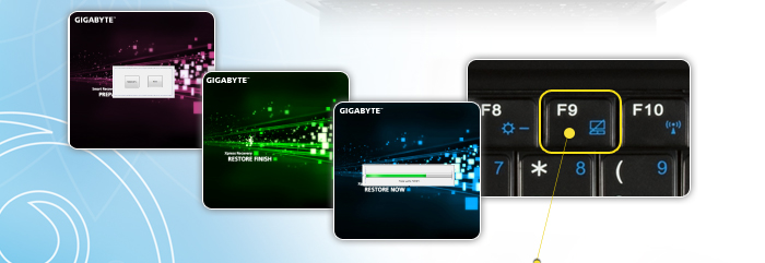 Hassle-free System Restore by Smart RecoverySmart Recovery allows users to restore their system back to factory default settings by simply pressing F9 on boot up. |
