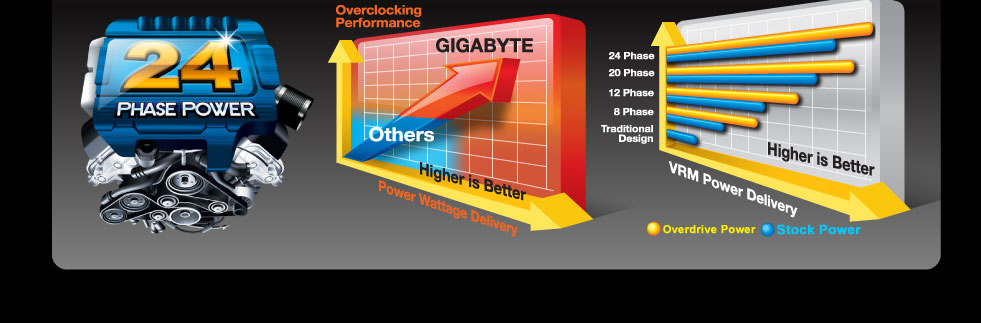GIGABYTE 6 series motherboards also feature Power Phase Boost with Multi-Gear Switching.