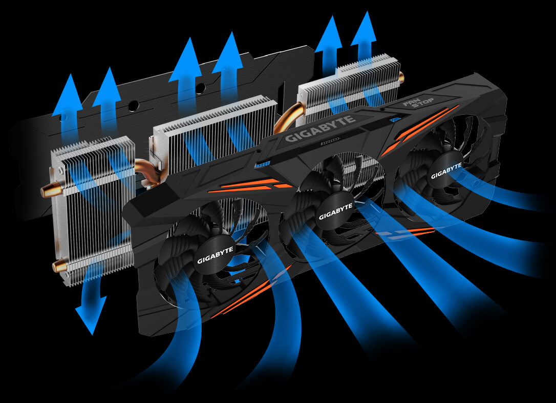 Chladicí systém WINDFORCE 2X je vybaven dvěma kompozitními heatpipe z čisté mědi, speciální architekturou žeber a unikátním tvarem lopatek. To vše společně poskytuje efektivní odvod tepla pro vyšší výkon při nižších teplotách.