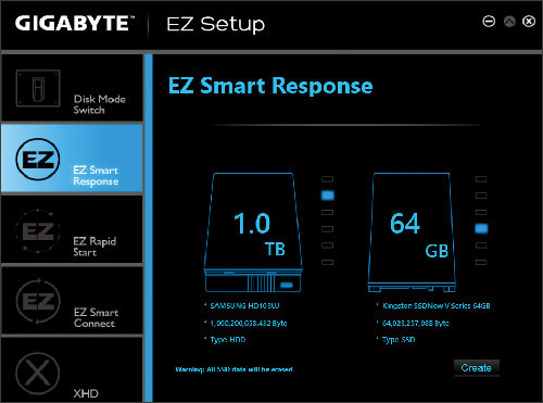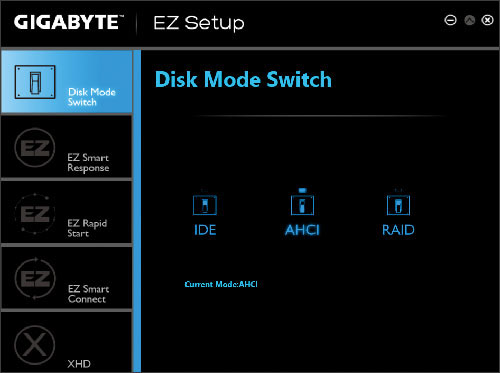 GIGABYTE EZ Setup combines several key utilities designed to simplify the installation and configuration procedures for several exclusive GIGABYTE apps including Disk Mode Switch, Smart Connect, EZ Rapid Start and EZ Smart Response.