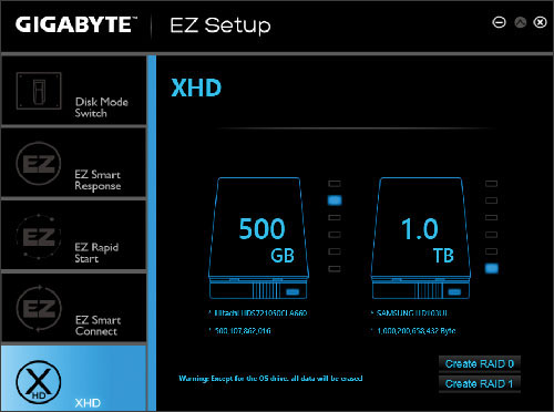 Accelerating system performance is made easy with the user friendly GIGABYTE eXtreme Hard Drive (X.H.D). GIGABYTE eXtreme Hard Drive (X.H.D) provides a quick way to boost your hard drive performance by simply adding another hard drive and providing you with an easy to use hard drive management.