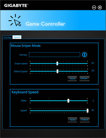 GIGABYTE Game Controller allows you to define your own hotkeys and change the mouse sensitivity, helping you make the most out of your keyboard and mouse in games.