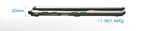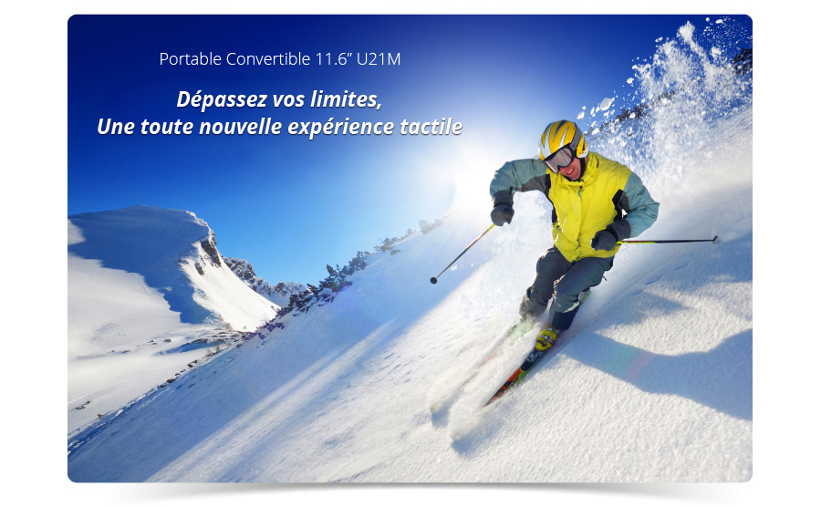 L'écran du U21M permet des rotations à 180° pour une utilisation intuitive et ergonomique en toute circonstance, le transformant instantanément en une véritable tablette. Le U21M ne pèse que 1.49Kg pour une épaisseur maximale de 20mm, une solution tout-en-un répondant à tous vos besoins quotidiens.