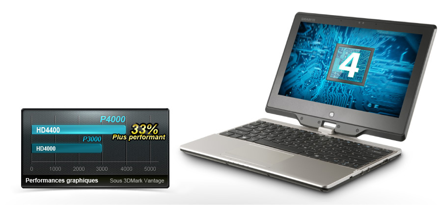 Les processeurs Intel® Core™ de 4ème génération ( Haswell ), gravés en 22nm, embarquent la technologie 3D Tri-Gate. Cette innovation permet d'accroitre l'autonomie de la batterie de votre portable, de booster les performances brutes de votre système, de traiter avec toujours plus de rapidité les données graphiques ( images, vidéos... ) tout en offrant de nouvelles couches de sécurité.