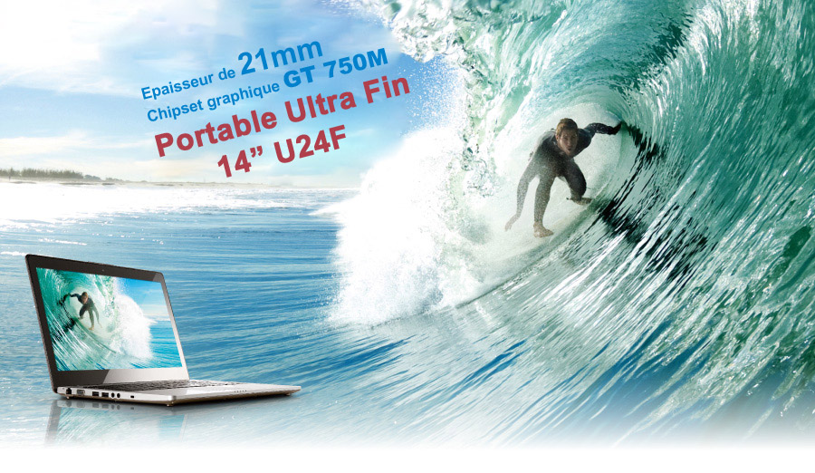 Le U24F est livré avec un chipset graphique NVIDIA® GeForce® GT 750M 2Go pouvant atteindre des scores de 10,000 points sour 3D Mark Vantage !