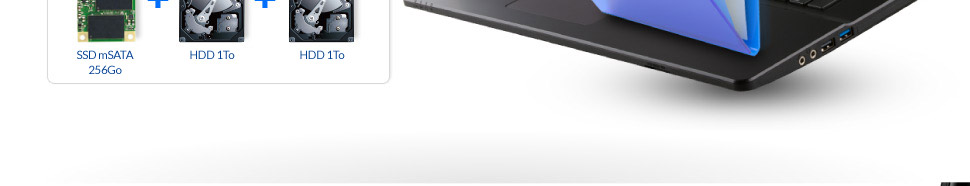 Le système de stockage massif du Q2756F permet d'accueillir un SSD mSATA 256Go ainsi que deux disques durs de 1To afin de vous faciliter la gestion de tous vos fichiers, et ce, en toute réactivité.