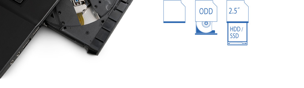 Le Q2756F propose un compartiment amovible pouvant accueillir soit un lecteur DVD soit un disque dur. Cette innovation est particulièrement intéressante pour un joueur souhaitant customiser sa configuration en fonction de ses besoins, et bénéficier le cas échéant, d'une configuration ultra-légère si aucun périphérique n'est inséré.