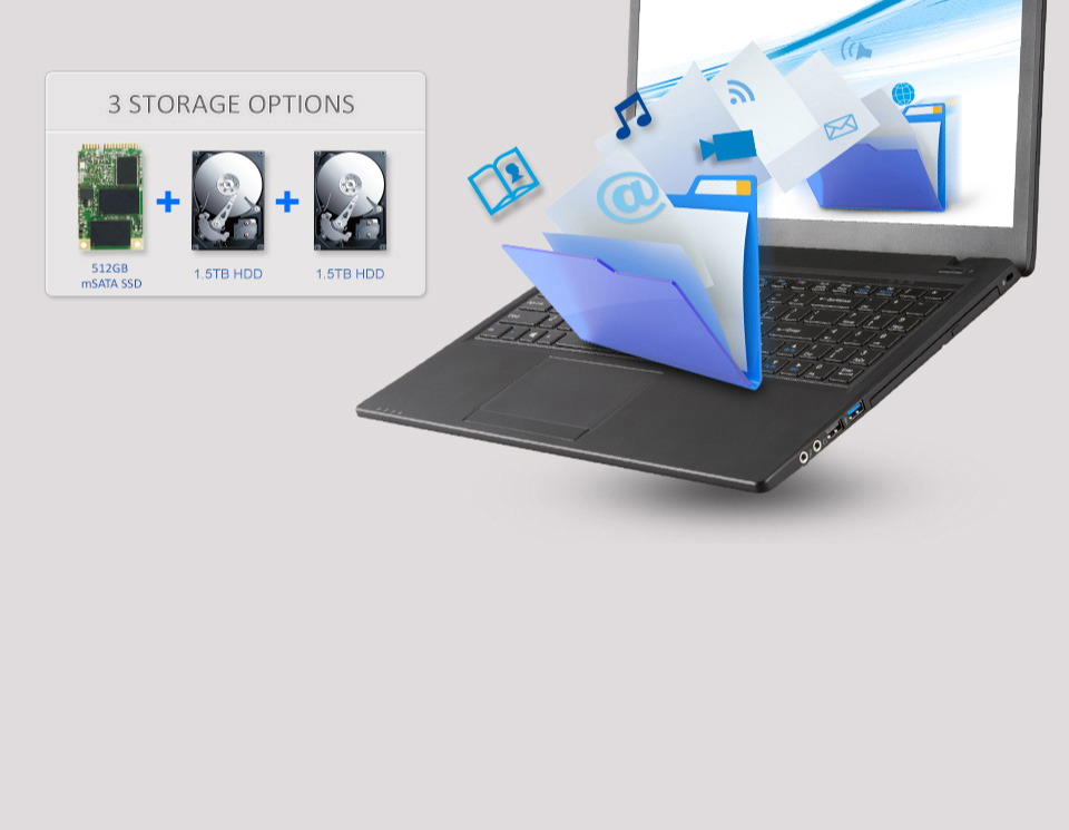 The massive dual-storage system of Q2556N v2 can support up to 512GB mSATA SSD + two 1.5TB HDD huge storage space, providing high performance and massive data storage. It’s very easy to store all your work and stuff without ever needing external storage devices.