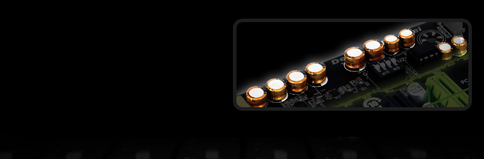 Nichicon Pro Audio Capacitors High End Nichicon Audio Capacitors GIGABYTE motherboards use the highest quality Nichicon high end audio capacitors.
