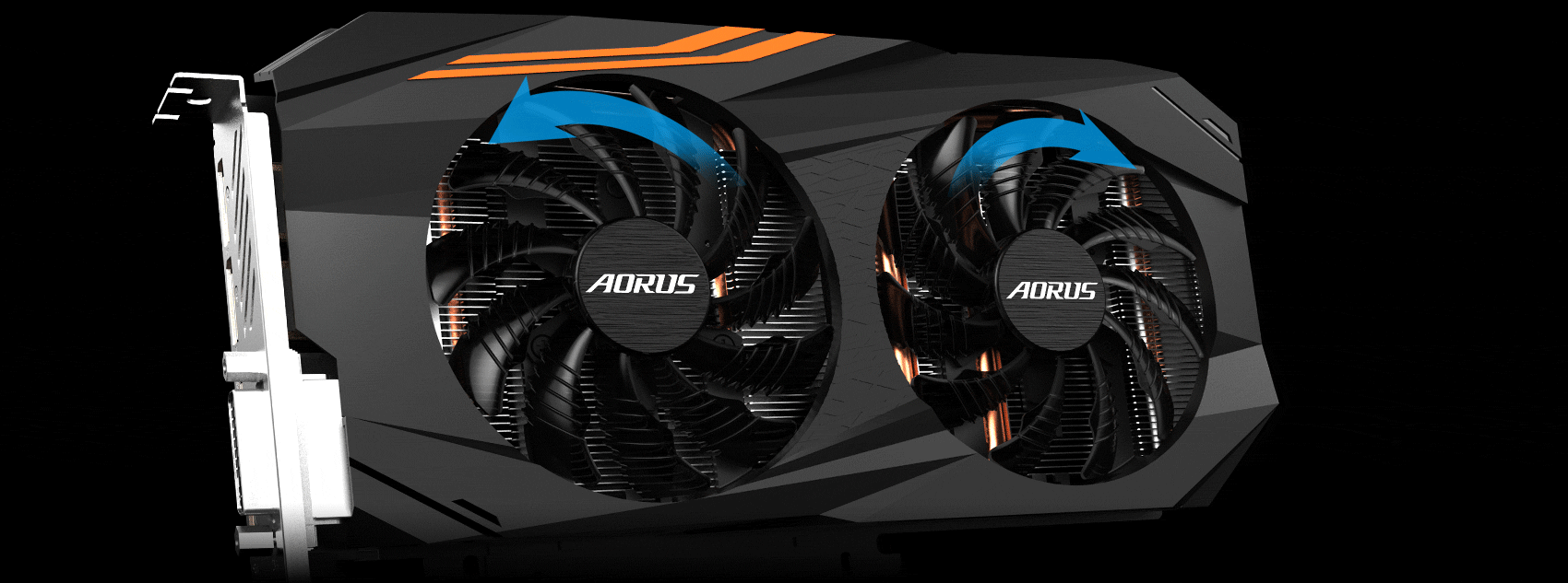 The AORUS graphics cards are equipped with 3D-Active Fan. The fans will remain off when the GPU is under a set loading or temperature for low power gaming. The LED fan indicator on the top of the graphics card provides an instant display of the fan status.