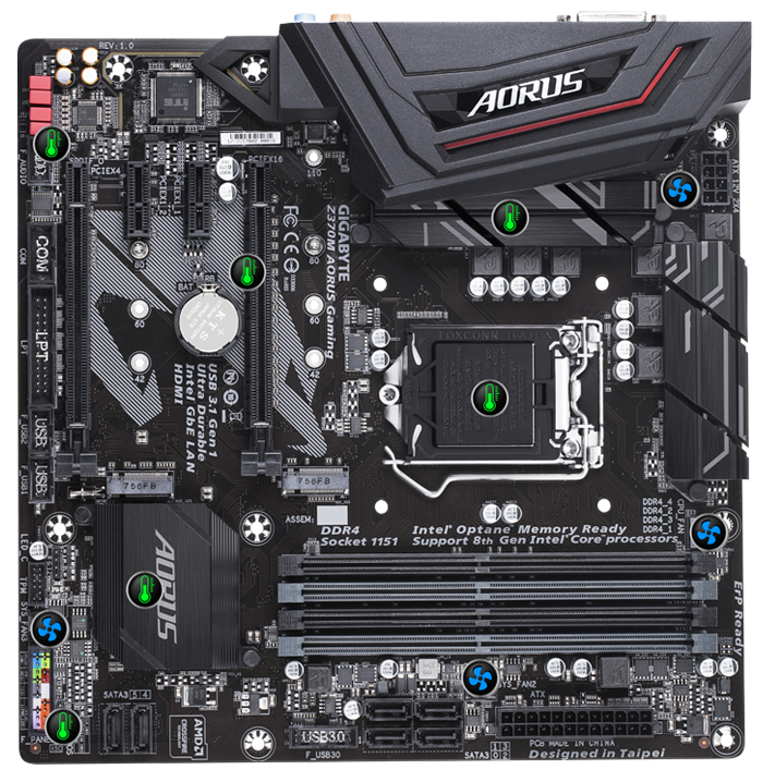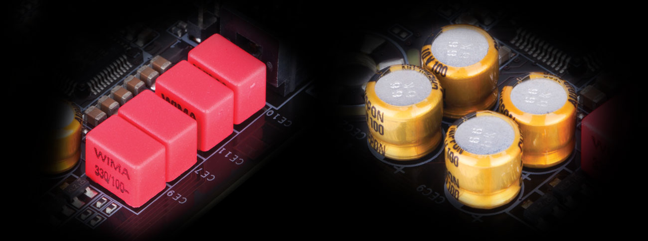 The AORUS Z370 motherboards boast a combination of Hi-Fi grade WIMA FKP2 capacitors and audio grade Fine Gold capacitors. While the Fine Gold capacitors are suited for high-grade audio equipment, using state of the art technology to provide rich sound in the bass and clearer high frequencies, the WIMA FKP2 capacitors are being used widely in premium grade Hi-Fi systems. The addition of this to the exclusive AORUS AMP-UP Audio technology makes for the ideal onboard sound solution for the most demanding audiophiles.