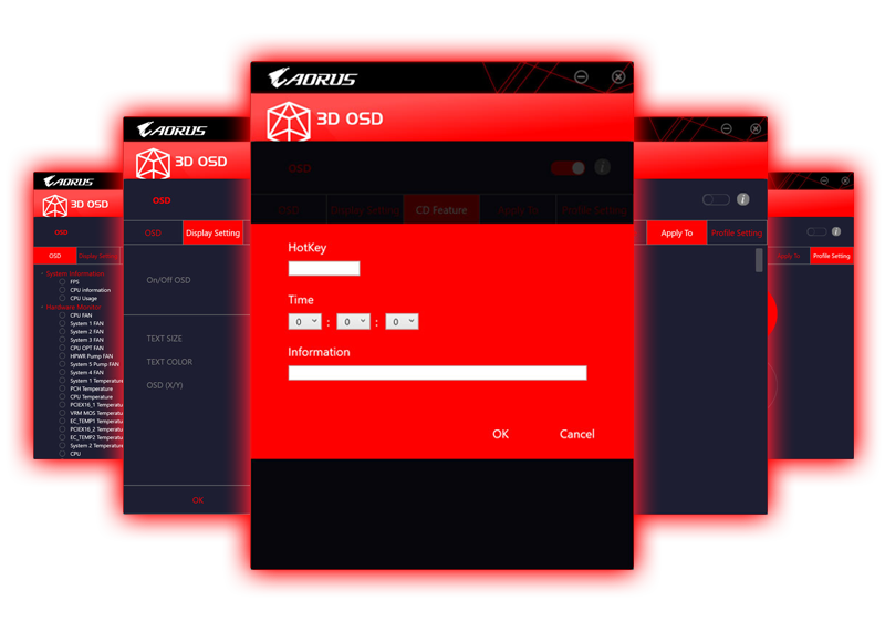 3D OSD automatically detects and displays your system information during games, allowing you to easily get a hold of your system information without switching between screens.