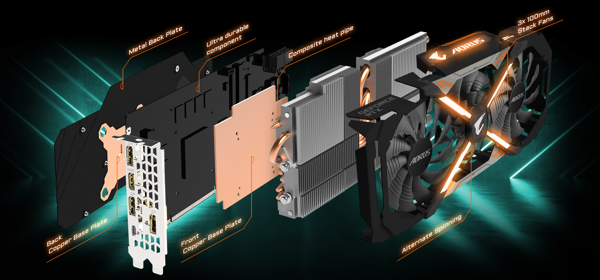 Az AORUS teljes hűtési megoldást biztosít a videokártyái minden komponensére kiterjedően. Gondoskodtunk nem csupán a GPU-ról, de a VRAM-ról és a MOSFER-ekről is, hogy stabil, tartós tuningra is lehetőség nyíljon hosszú éveken át. A WINDFORCE STACK 3x 100 mm hűtőrendszer a leginnovatívabb megoldás a piacon és a hagyományos megoldásnál sokkal hatékonyabb hűtést biztosít a videokártyák számára.