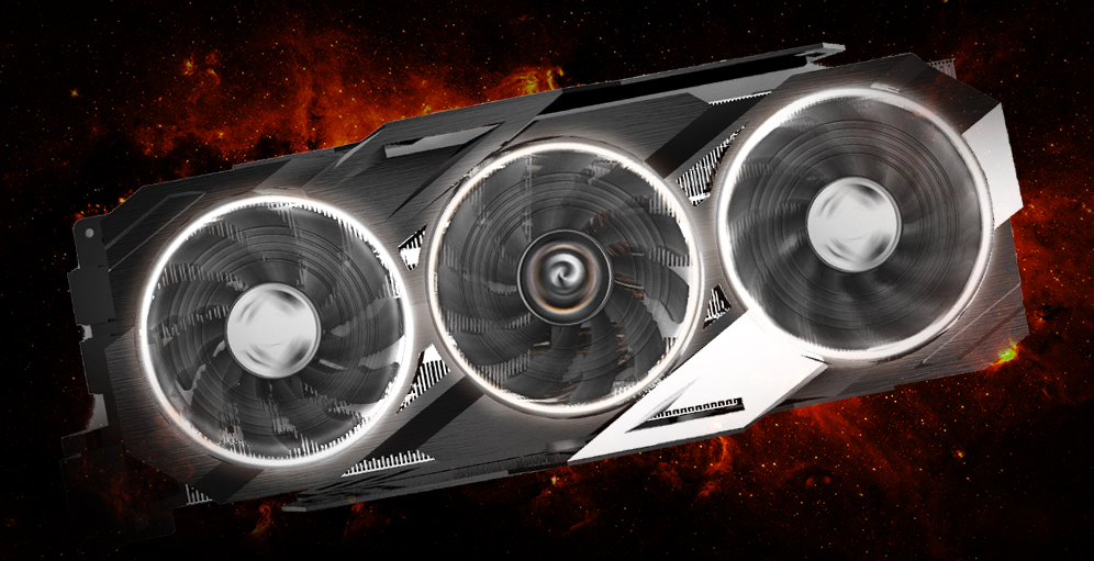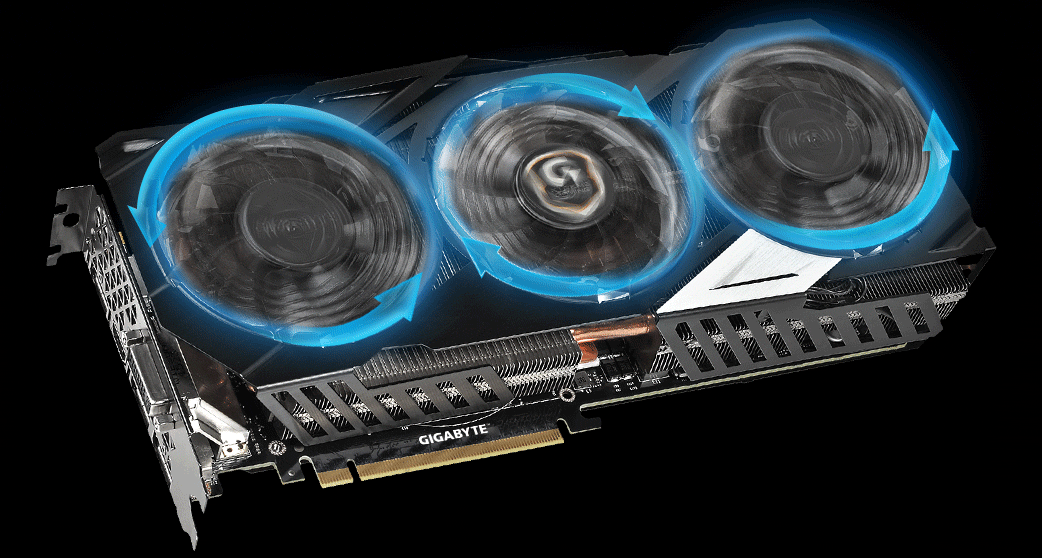 The middle fan spins in the reverse direction to optimize air flow to dissipate heat more effectively for accomplishing higher performance at a lower temperature.