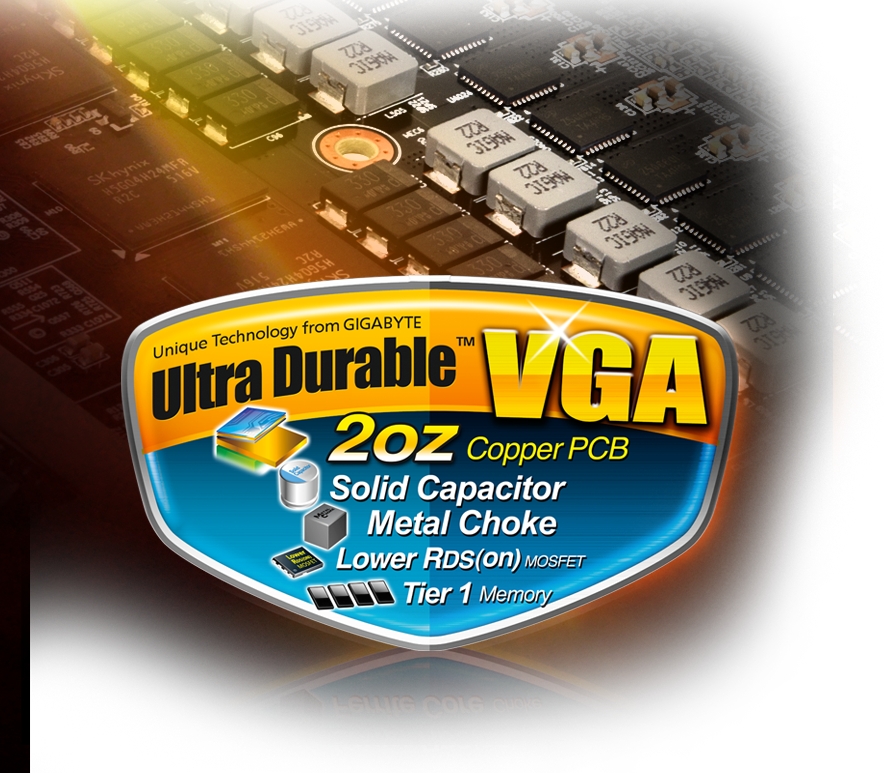 Ultra Durable VGA board provides dramatic cooling effect on lowering both GPU and memory temperature by doubling the copper inner layer of PCB.