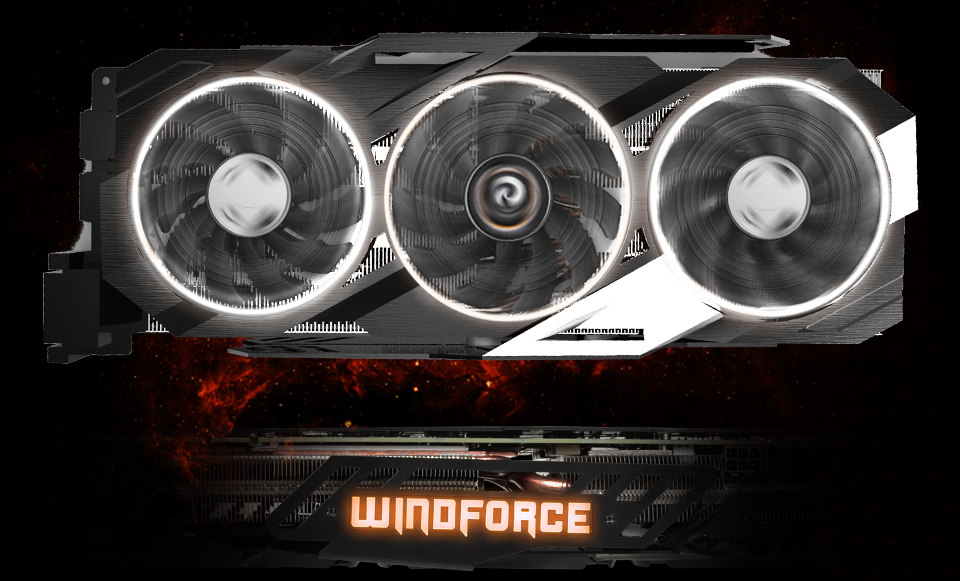 The WINDFORCE 3X cooling system features four 6mm and two 8mm composite heat-pipes, special fin architecture, unique blade fan design and GIGABYTE "Triangle Cool" technology, together delivering an effective heat dissipation capacity for higher performance at lower temperatures.