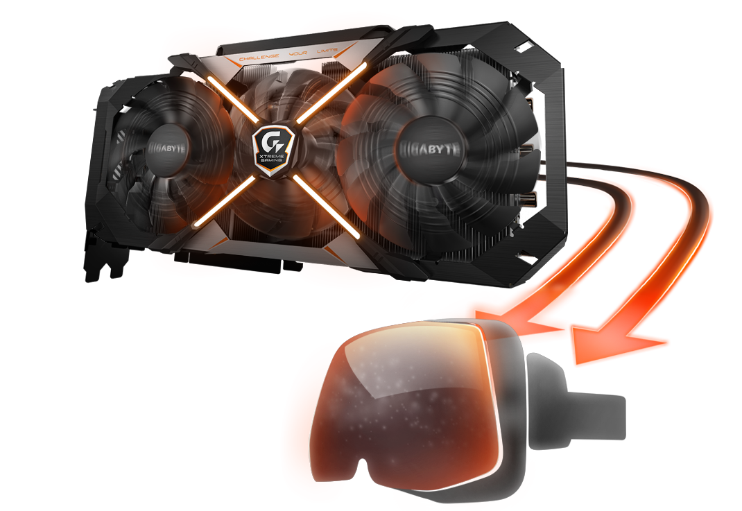 The XTREME GAMING graphics cards are equipped with 3D-Active Fan, the industry's first 0dB semi-passive fan design introduced by GIGABYTE back in 2007. The fans will remain off when the GPU is under a set loading or temperature for low power gaming. The LED fan indicator on the top of the graphics card provides an instant display of the fan status.