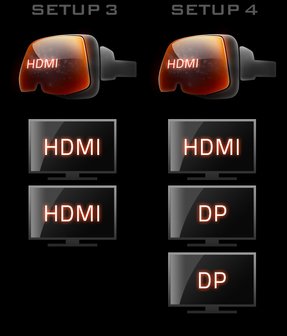 With 2 extra HDMI ports, Xtreme VR Link innovatively provides the most flexible output connectivity. Connect up to 4 monitors and/or VR devices at the same time with a total of 3 DisplayPort and 3 native HDMI ports that could be used interchangeably under VR Mode for all types of gaming configuration. Outputs are automatically detected upon restarting PC with no further setting required.