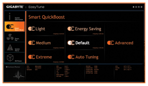 GIGABYTE’s exclusive Dashboard Mode puts your firmly in the driving seat, allowing users to have complete access to all data related to your motherboard’s key components including CPU, graphics and memory clocks, temperatures, voltages and fan speeds. |