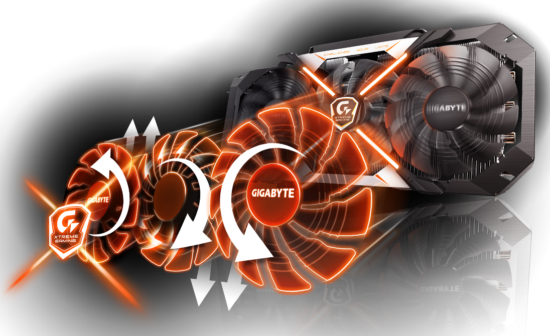 The middle fan spins in the reverse direction to optimize the airflow to dissipate the heat more effective for accomplishing higher performance at a lower temperature.