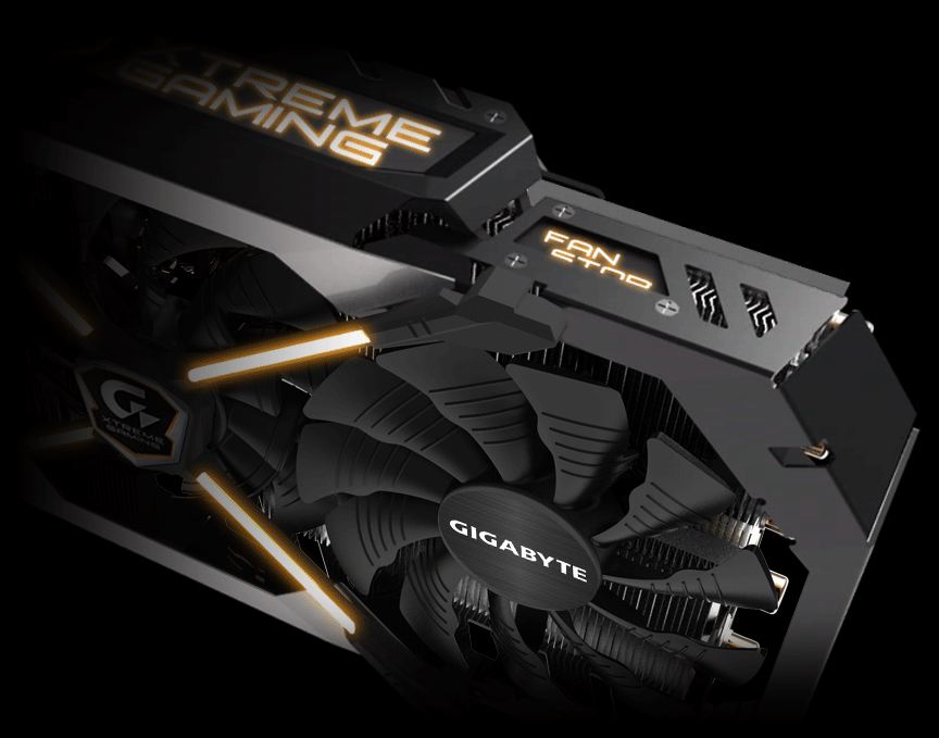 The XTREME GAMING graphics cards are equipped with 3D-Active Fan, the industry's first 0dB semi-passive fan design introduced by GIGABYTE back in 2007. The fans will remain off when the GPU is under a set loading or temperature for low power gaming. The LED fan indicator on the top of the graphics card provides an instant display of the fan status.