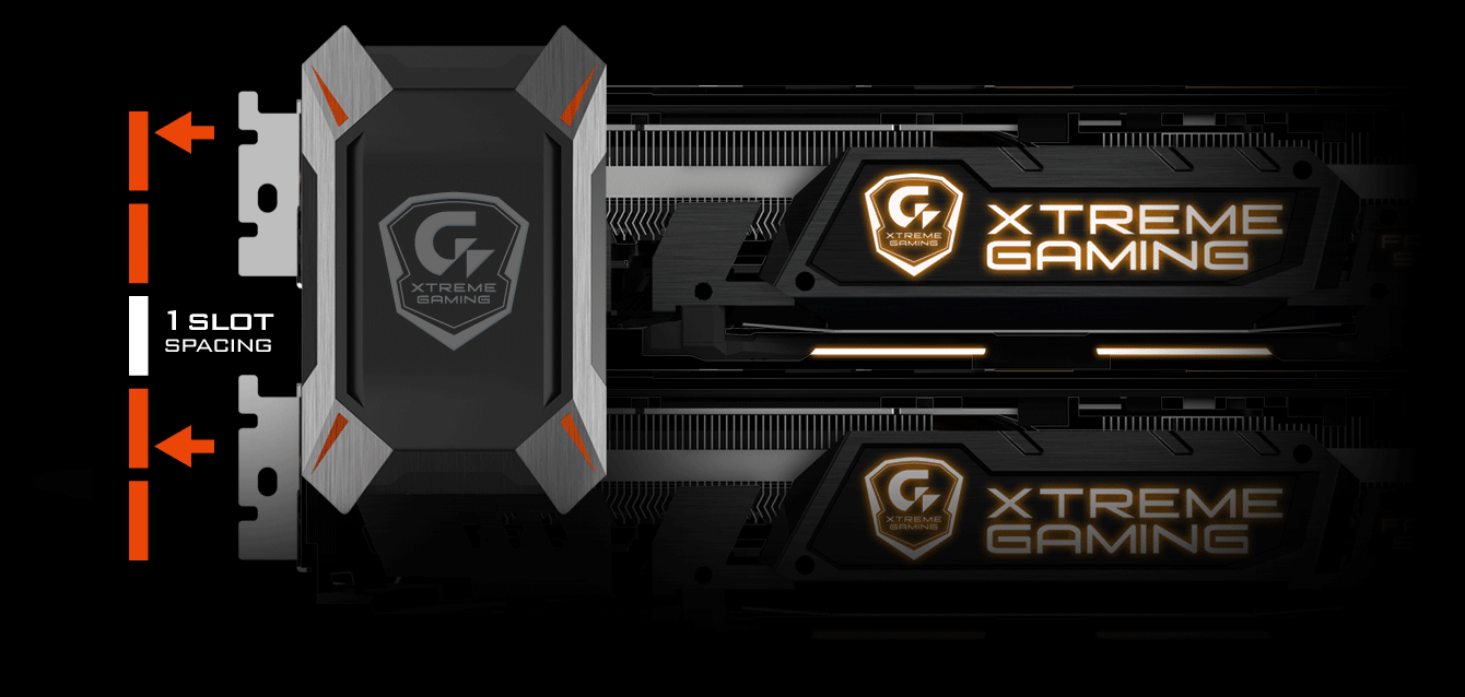 Xtreme SLI HB(High Bandwidth) bridge supports illuminated logo with customizable effects and dual link SLI speed up to 1080 MHz.