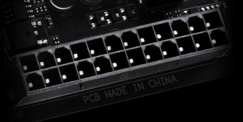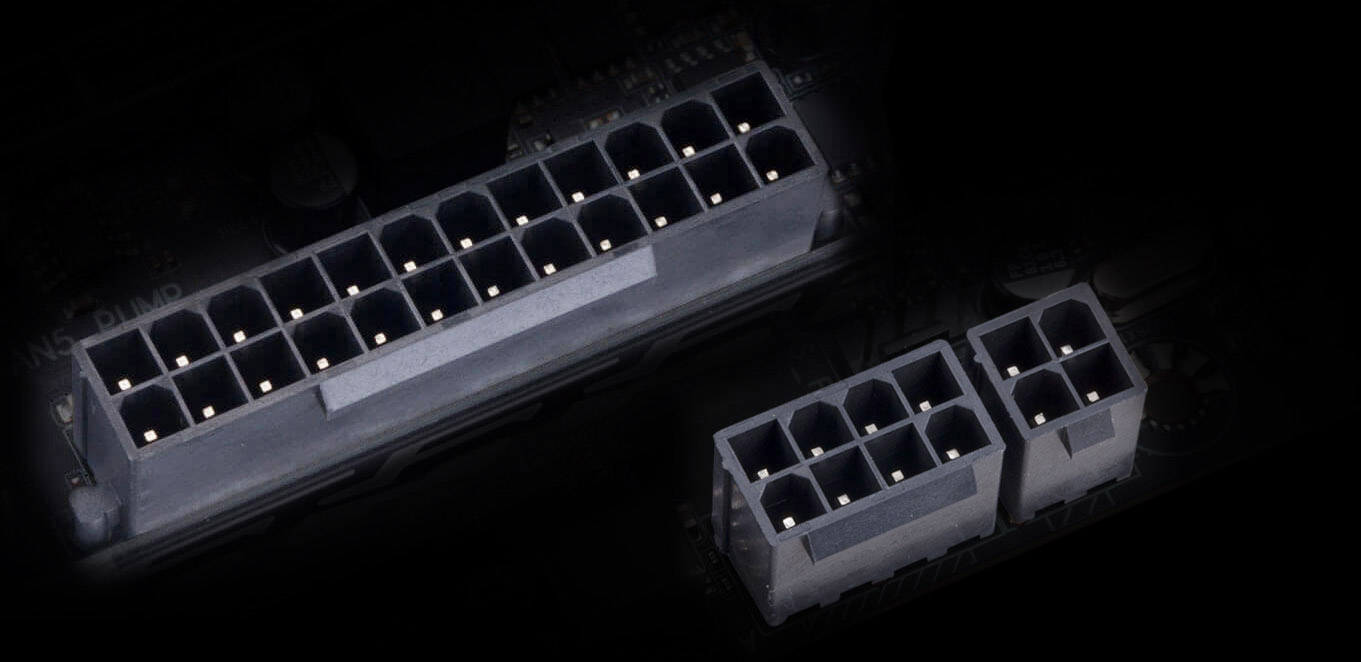 X570 AORUS motherboards feature solid plated ATX 24pin & ATX 12V 8pin + 4pin power connectors to offer a stable power supply during CPU overloading.