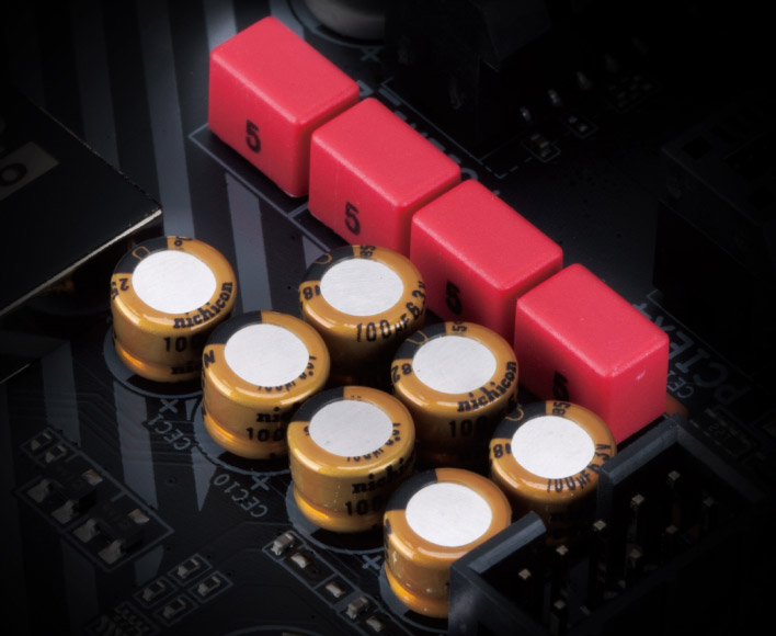 The AORUS motherboards boast a combination of Hi-Fi grade WIMA FKP2 capacitors and high-end Chemicon audio capacitors. While the high-end audio capacitors are suited for high-grade audio equipment, using state of the art technology to provide rich sound in the bass and clearer high frequencies, the WIMA FKP2 capacitors are being used widely in premium grade Hi-Fi systems. The addition of this to the exclusive AOURS AMP-UP Audio technology makes for the ideal onboard sound solution for the most demanding audiophiles.