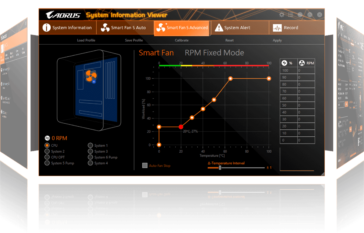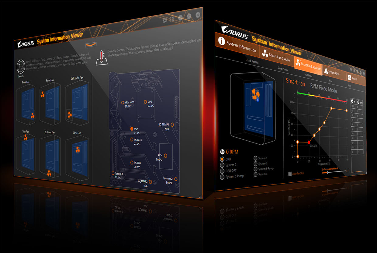 GIGABYTE System Information Viewer is a central location that gives you access to your current system status. Monitor components such as the clocks and processor, set your preferred fan speed profile, create alerts when temperatures get too high or record your system's behavior; these are the possibilities of the System Information Viewer.