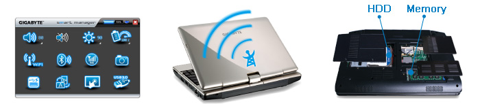 Smart Manager Control CenterSmart Manager user interface consolidates different system programs into one single intuitive guiding page, which makes personal setting just a click away. High Speed Mobile Broadband Support(Optional)With 3.5G support to access high-speed internet anytime anywhere. This allows getting online, without worrying about Wi-Fi hotspots! Easy Upgrade for HDD and MemoryWhen the need for more storage space or higher memory capacity arises, the special modularized-design allows quick and easy hassle-free upgrading. |