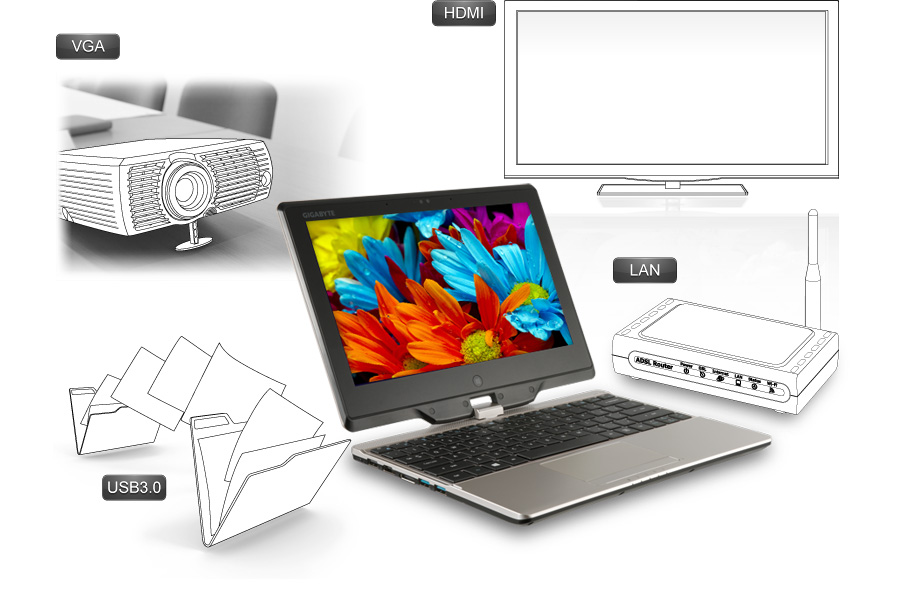 The convertible Ultrabook™ from GIGABYTE comes with Windows 8 and the multi-touch screen allows you to handle your daily life, work, and entertainment easily.