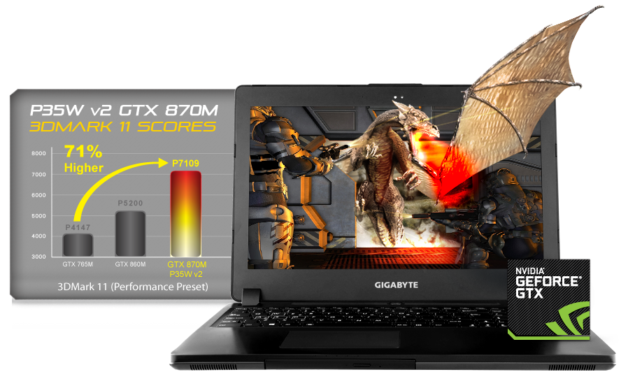 The P35W v2 supports up to two 512GB mSATA SSD and two huge 1.5TB HDD*, delivering high speed and massive storage options. The RAID 0 structure and extraordinary mSATA SSD read/write rate, 1000MB/s and 850MB/s respectively, produces hot-pursued performance for serious gamers.