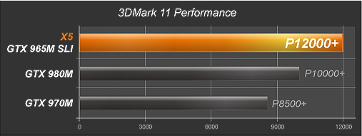 Maxwell architecture 기반의 새로운 900M 시리즈는 개선 된 전력 효율성을 제공하며 GTX965M LSI로 동작 함으로3DMark 11에서 P12000+의 높은 점수가 나와 GTX980M을 초월한 성능을 체감할 수 있습니다. 고성능 게임타이틀도 무리없이 플레이 할 수 있는 성능의 AORUS X5 데스크탑 성능의 슬림하고 가벼운 Laptop