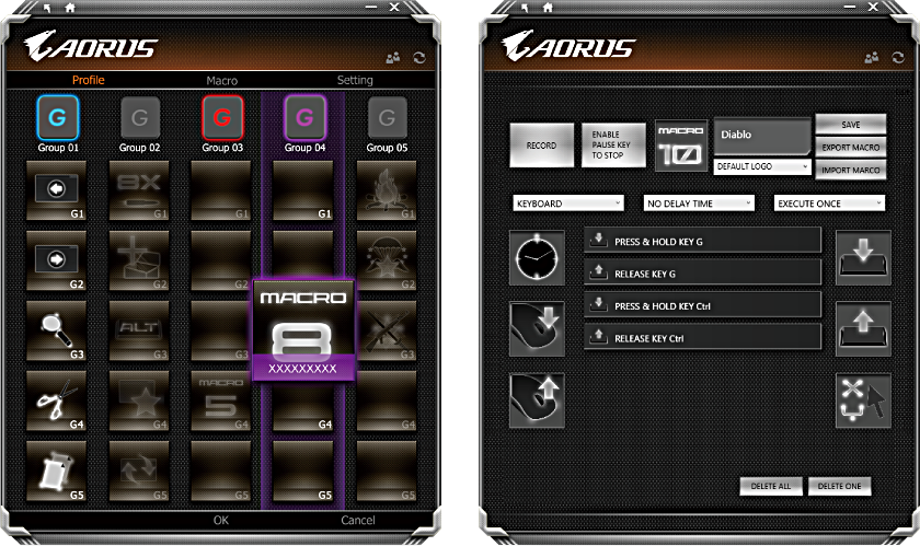 AORUS만의 독점적인 프로그램인 매크로 엔진 프로그램은 반복적인 키 클릭을 최소화 시켜 줍니다. 또한 AORUS 공식 포럼을 통하여 클라우드 공유, 핫 매크로 랭크 및 사용자를 위한 최신 게이밍 정보를 받아 볼 수 있습니다.