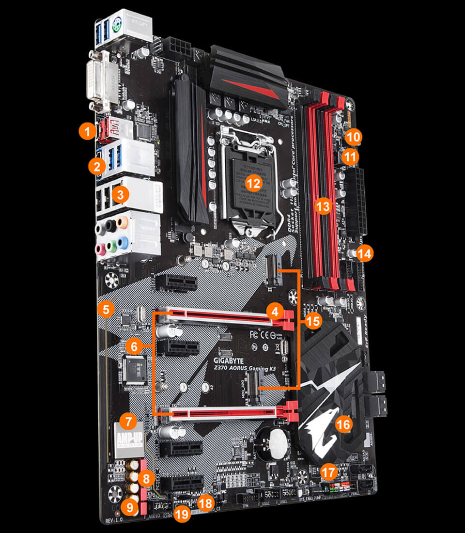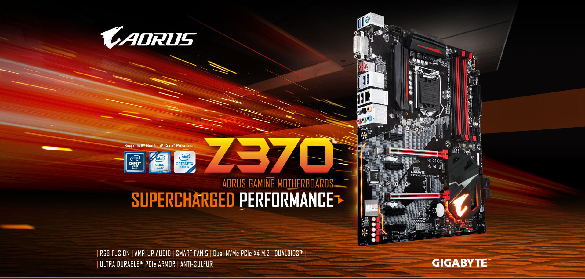 AORUS Z370 시리즈 메인보드는 새로운 설계와 개성 넘치는 아머 및 방열 가드를 채용하고 AORUS의 강력한 기능을 탑재하여 익스트림한 쿨링 및 최고 성능을 완비하여 사용자의 기대에 부응한다!