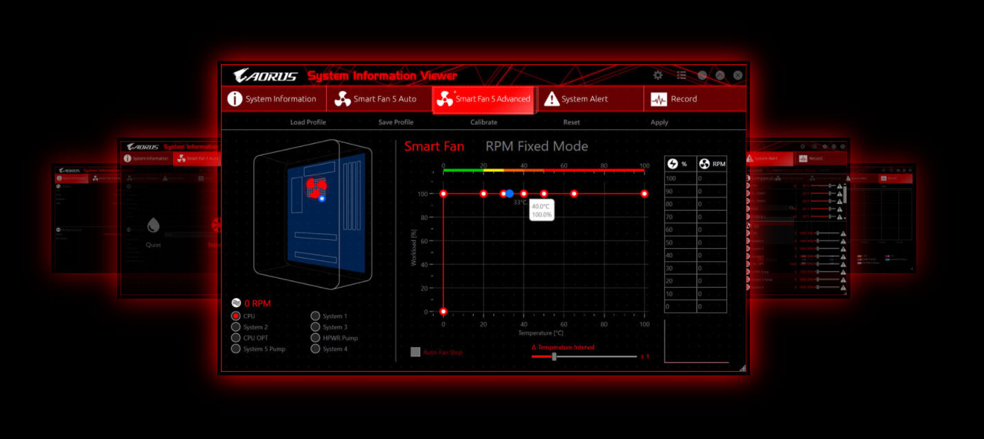 직관적이고 사용하기 쉬운 인터페이스를 통해 각각의 팬 또는 워터 펌프의 회전 커브를 조정하고 특정 온도를 감지하면 각각의 속도로 쿨링 명령을 실행한다.