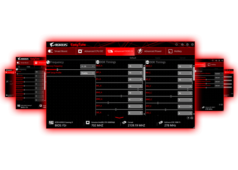GIGABYTE EasyTune™은 간편한 사용자 인터페이스로 시스템을 최적화 해주거나 또는 Windows에서 시스템 및 메모리 주파수와 전압을 쉽게 튜닝할 수 있다. 사용자가 시스템 튜닝을 원하지 않을 경우, Smart Quick Boost을 사용하여 원클릭으로 오버클럭을 자동 설정하여 성능을 대폭 제고할 수 있다.