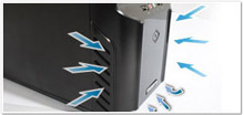 | Large 12cm front air intake fan plus 12cm rear exhaust fan, offering an ideal cooling environment. |