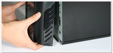 | Power supply positioned at bottom, lowering the center of weight to stabilize the chassis and separate system air flow from power supply. |