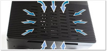 | Large 12cm front air intake fan plus 12cm rear exhaust fan, offering an ideal cooling environment. |