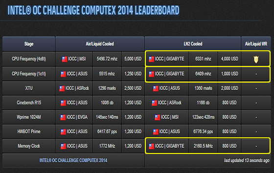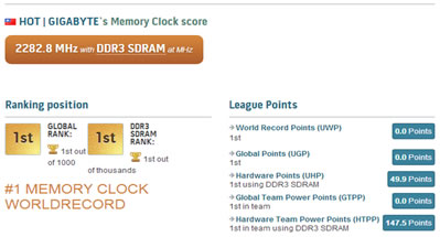 • World’s highest DDR3 memory frequency at 4.56GHz.