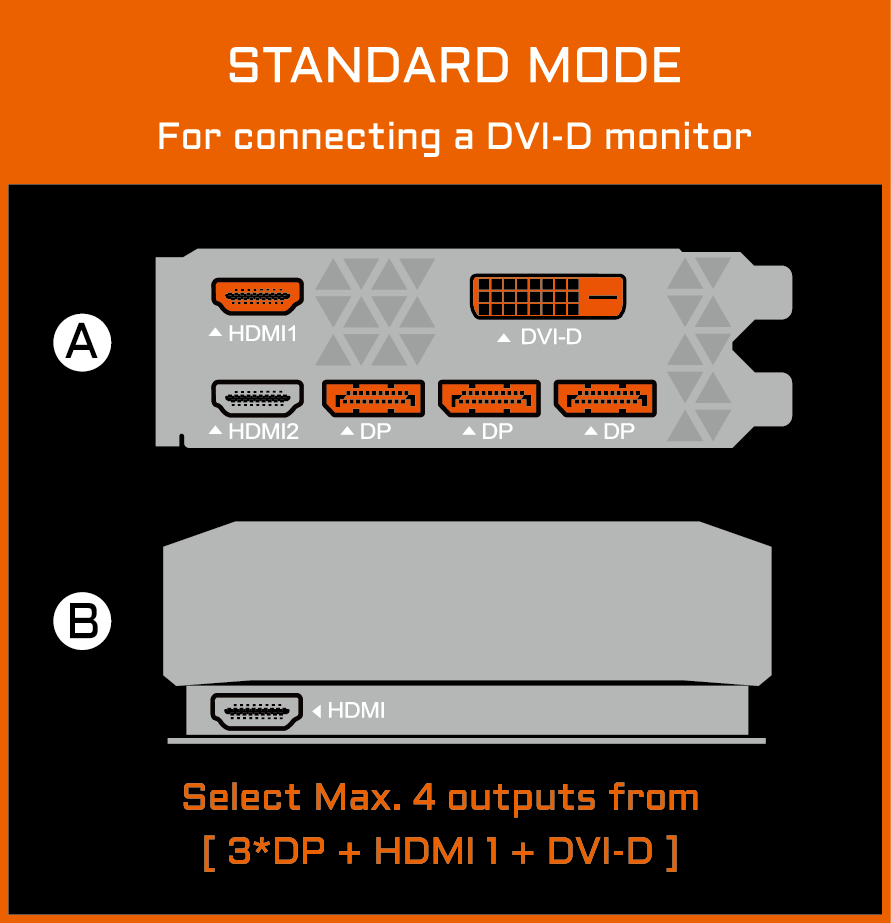 Compared to the reference design, the 12+2 power phases on the card make the MOSFET working at a lower temperature and provide more stable voltage output. Over temperature protection and load balance to each MOSFET can effectively extend the card life.