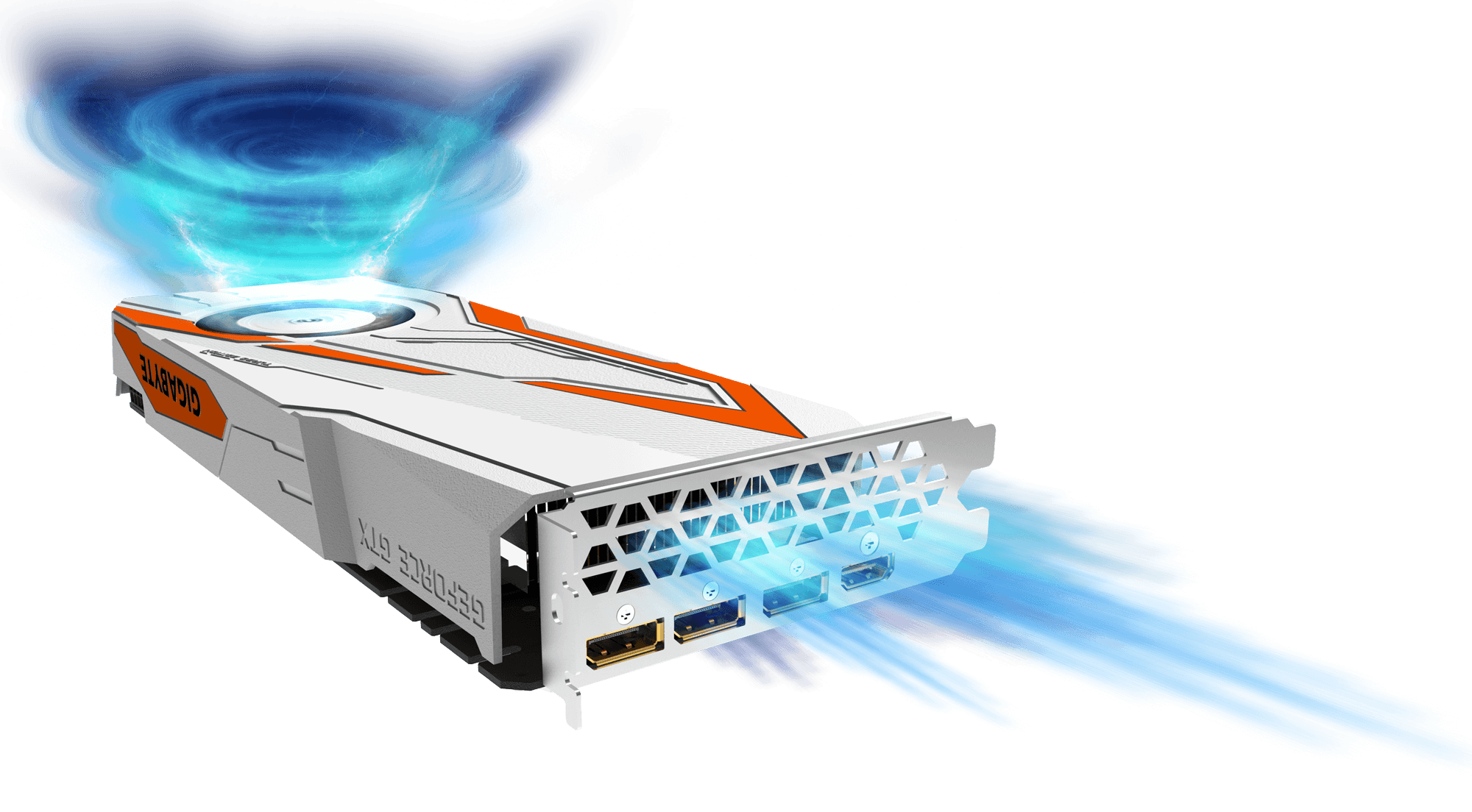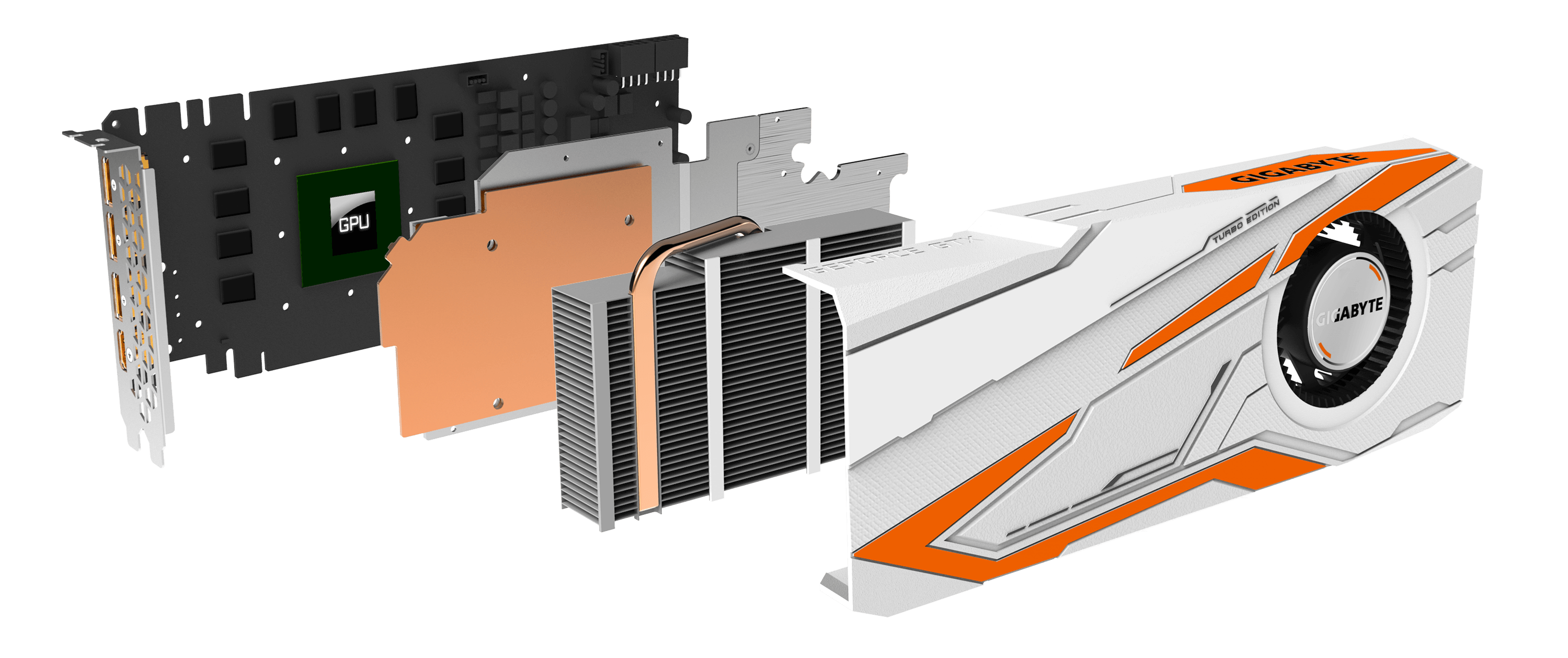 GIGABYTE turbo ventilator rashladni sistem poseduje ekskluzivni ventilator koji izduvava vazduh dizajniran sa direktnim dodirom vrućih cevi kako bi se toplota efikasno usmerila van kućišta, isporučivši veoma brze, a istovremeno i stabilne performanse kada ste u VR ili se igrate u ultra HD. Karta je jednostavna za instalaciju, u okvirima širine 2 PCI-E slota, zbog svog kompaktnog profila.