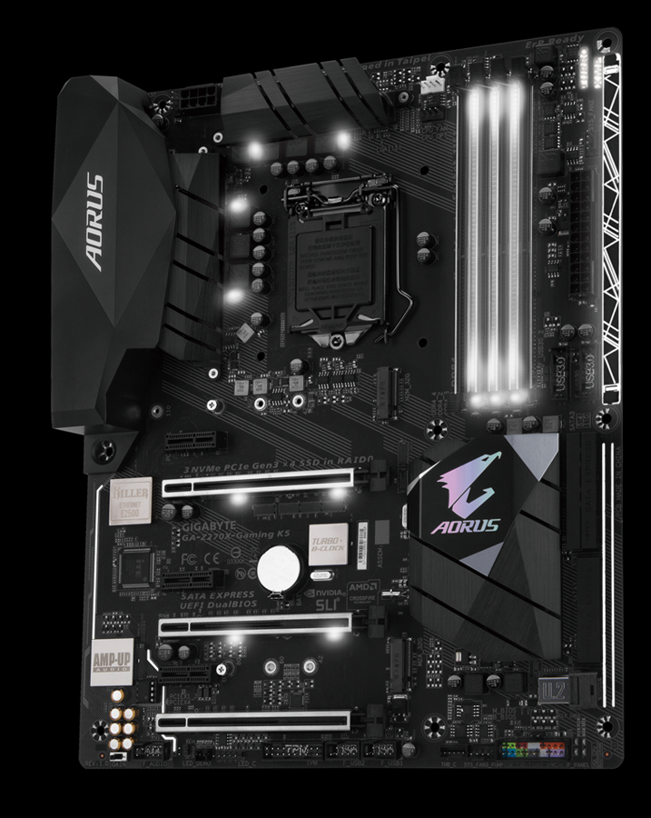 AORUS' Z270 motherboards offers the industry’s best compatibility in terms of NVMe storage for users who demand high capacity and seek the best performance. AORUS' unique design supports up to three Intel 750 Series NVMe PCIe SSDs which can be configured in RAID for record speeds of up to 3525 MB/s (Sequential Read), making AORUS the obvious choice for the ultimate PC.