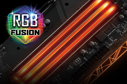 Now offering more LED customizations than ever, users can truly adapt their PC to represent their lifestyle. With full RGB support and a redesigned RGB Fusion application, the user has complete control over the LEDs which surround the motherboard.